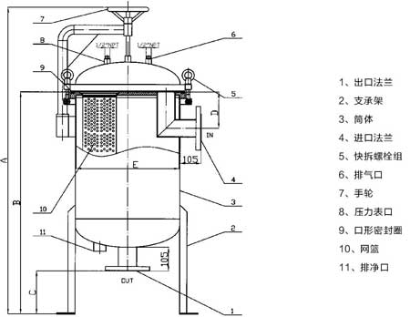 3.快開多袋式過濾器,20秒即可啟閉 ,適用于大流量并需要經(jīng)常更換濾袋的場合;