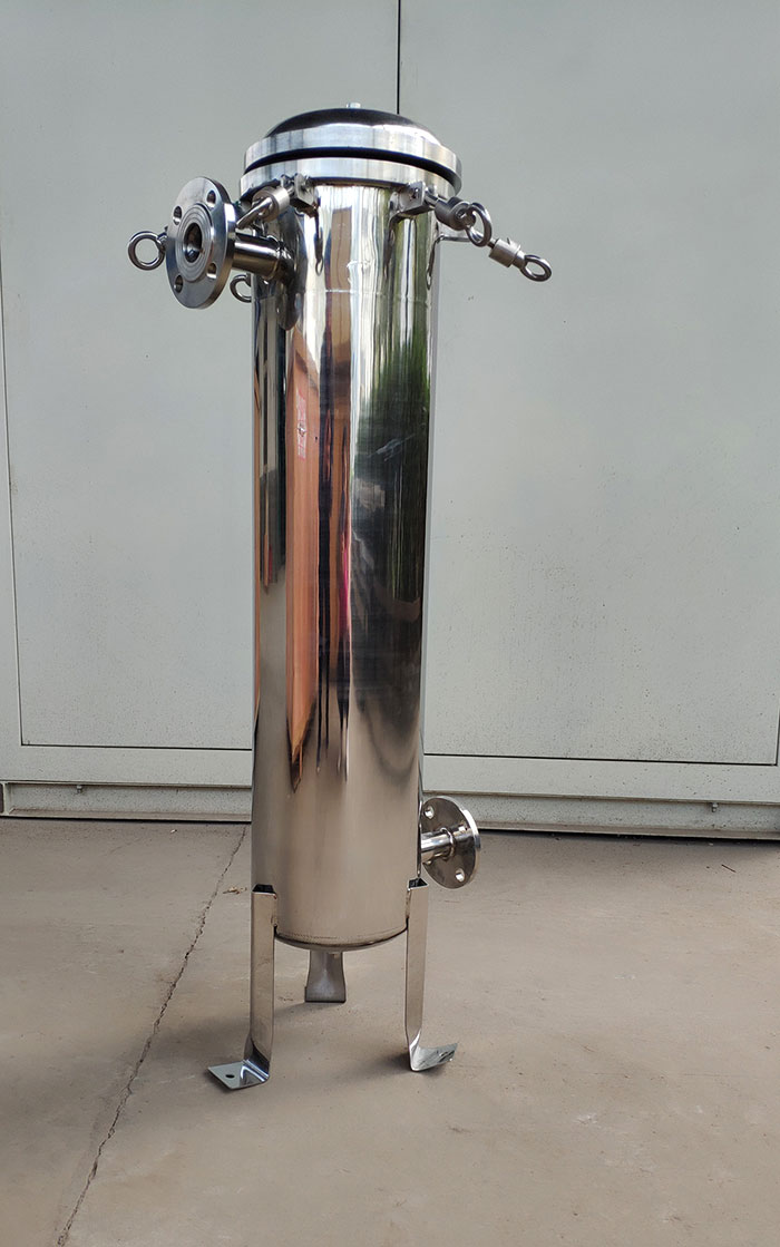 袋式過濾器是一種壓力式過濾裝置,主要由過濾筒體、上蓋、快開裝置、支撐網(wǎng)籃等部件組成。液體由設(shè)備入口流進,經(jīng)濾袋過濾后從出口流出,雜質(zhì)被攔截在濾袋之中,維護時只需更換濾袋即可。此過濾器內(nèi)部采用濾袋作為過濾元件,濾袋由金屬網(wǎng)籃支撐,適合液體精密過濾,去除其中的微量細小雜質(zhì) 。此過濾器具有結(jié)構(gòu)簡潔,操作快捷靈活,耗材經(jīng)濟的優(yōu)勢,并配備多種高性能濾袋,能夠滿足絕大多數(shù)過濾要求。